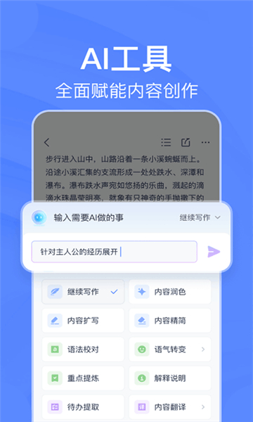 AI工具为内容创作注入强大动力,无论是写作构思、头脑风暴,还是文字润色、要点提炼、语言翻译,只需一键操作,就能轻松完成,大幅提升工作与学习的效率。