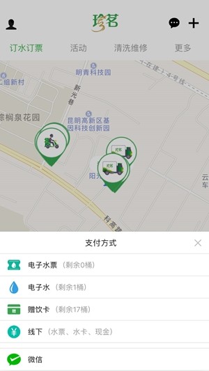 2、在订水订票界面,可以在地图上查看到周边服务点。