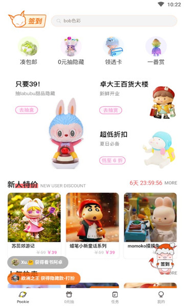 “扑奇pookie二次元潮玩盲盒”是一款整合了市场上各大潮玩盲盒品牌、手办、扭蛋及各类可爱小物件的综合性线上抽盒平台。