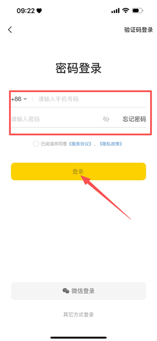 4、在密码登录页面,依次填写手机号与密码,点击登录,完成账号登录。