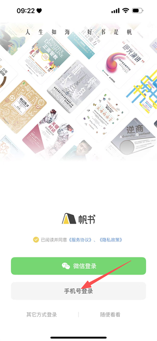 1、在帆书登录选择页,点击手机号登录选项,进入手机号登录页面。
