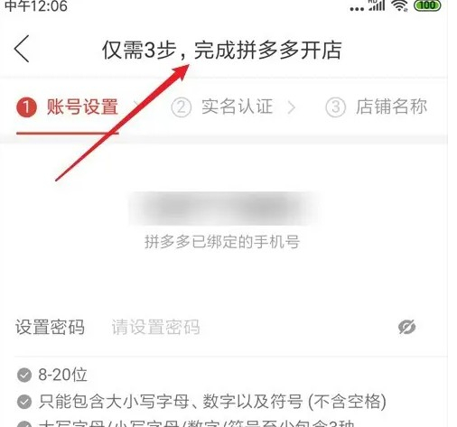 5、输入店铺名称,选择主营类目时需注意:一个店铺仅能选择一个主营类目,且该类目一旦选定便不可修改;之后输入登录密码,再选择填写资料。
