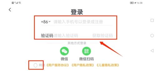 1、进入应用登录界面,输入手机号及验证码完成登录。