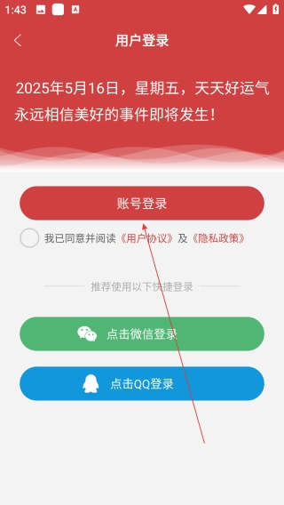 3、打开登录页面后,点击【账号登录】即可。