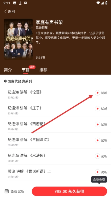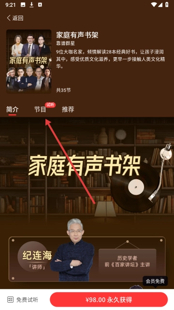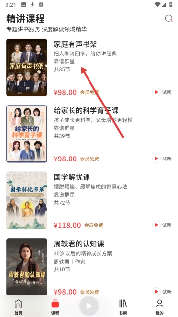 2、选择【家庭有声书架】,进入课程详情了解内容亮点。