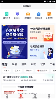 装修公司页面具备10秒快速报价、0元设计方案、局部空间装修、新房专业验收、全屋个性化定制等服务功能,同时支持查询本地装修公司信息。平台推荐的装修公司均提供齐家保保障服务,采用先验收后付款模式,由平台专业监理负责验收环节,并配备装修综合险。