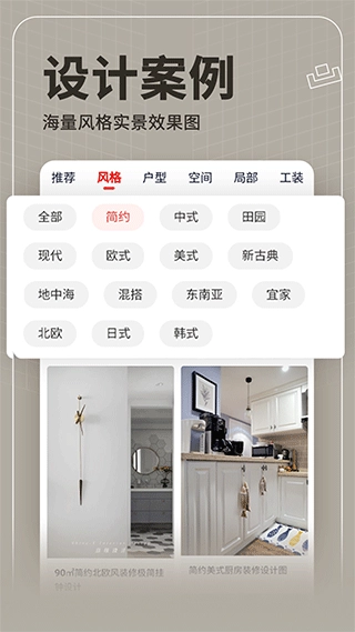 3、案例展示页面汇聚了海量高质量效果图,你可以通过空间、局部、风格、颜色这四个维度筛选,找到自己心仪的效果图。