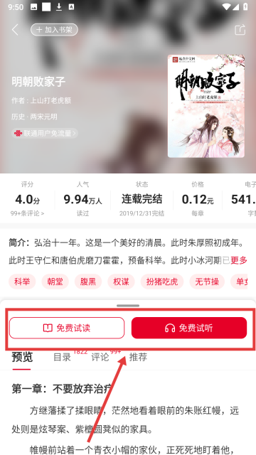 4、书籍页点击【免费试读或免费试听】,即可开始体验。
