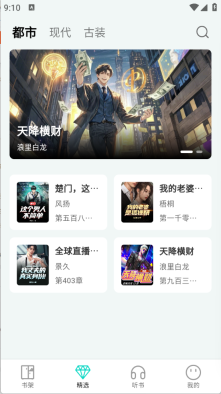 2、进入首页之后,“精选”页面,包含了很多的小说资源。