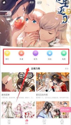 1、浏览各类漫画时,用户能借助热血、恋爱、冒险等分类导航,或是推荐板块,便捷地找到自己感兴趣的漫画作品。
