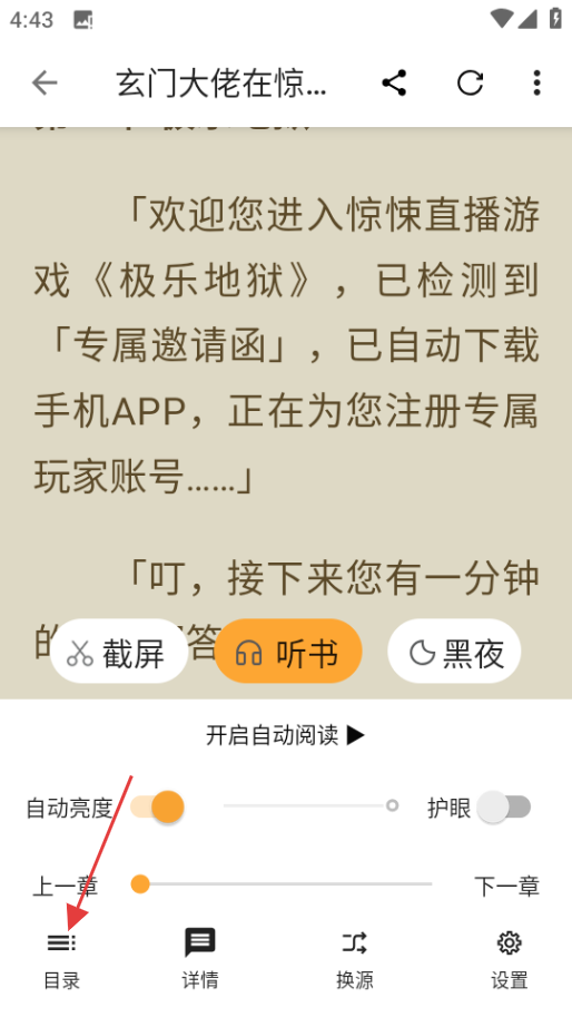 2、进入小说阅读界面后,能看到小说内容,要是想快速找到某一章,你可以点击目录,这样就能看到小说的章节列表,根据自己的喜好调整阅读体验。