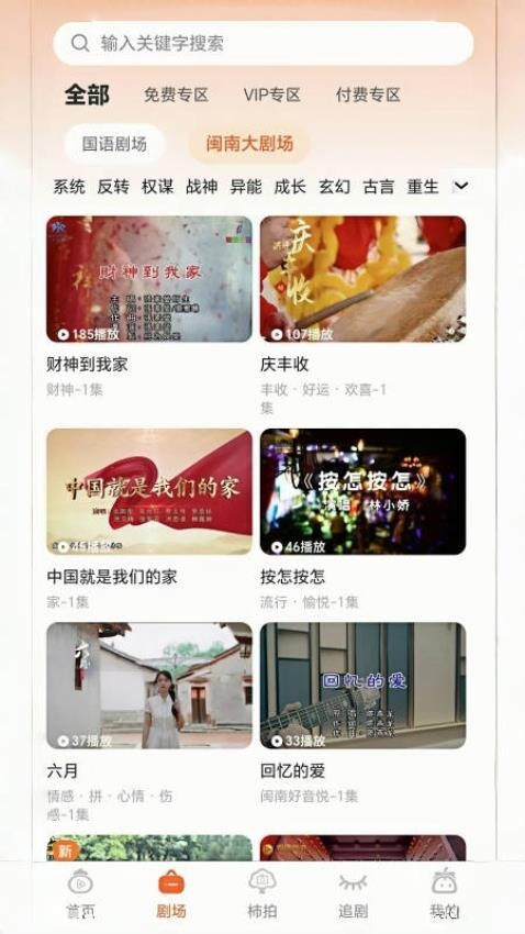 柿播app是一款专门观看热门短剧视频的平台,平台中整合的全网热门优质的短剧视频资源,能够提供不同题材的短剧视频来进行自由观看,包含玄幻、古言、重生、权谋等多种题材,可以满足更多群体的观看需求,能够轻松寻找自己喜欢的短剧类型;并且里面的短剧内容可以进行无缝衔接,自动播放续集,可以带来沉浸式追剧体验;此外用户也可以获取更多闽南金曲,可以感受不一样的闽南风;平台也可以记录用户的观看历史,这样也可以让用户查看自己的历史观看记录,方便找到自己喜欢的内容来进行观看!