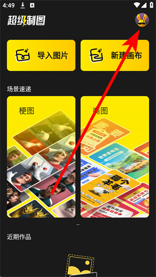 1、打开超级制图,在首页点击右上角的个人头像,进入个人页面。