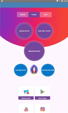 1、打开好的90fps正版软件,选择全局模式global,再点击解锁90帧模式。