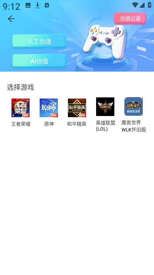 5、进入账号估值界面后,也能够对游戏账号进行人工估值操作。