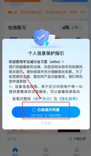 点击“同意”按钮即可成功进入应用,开启您的学习之旅。