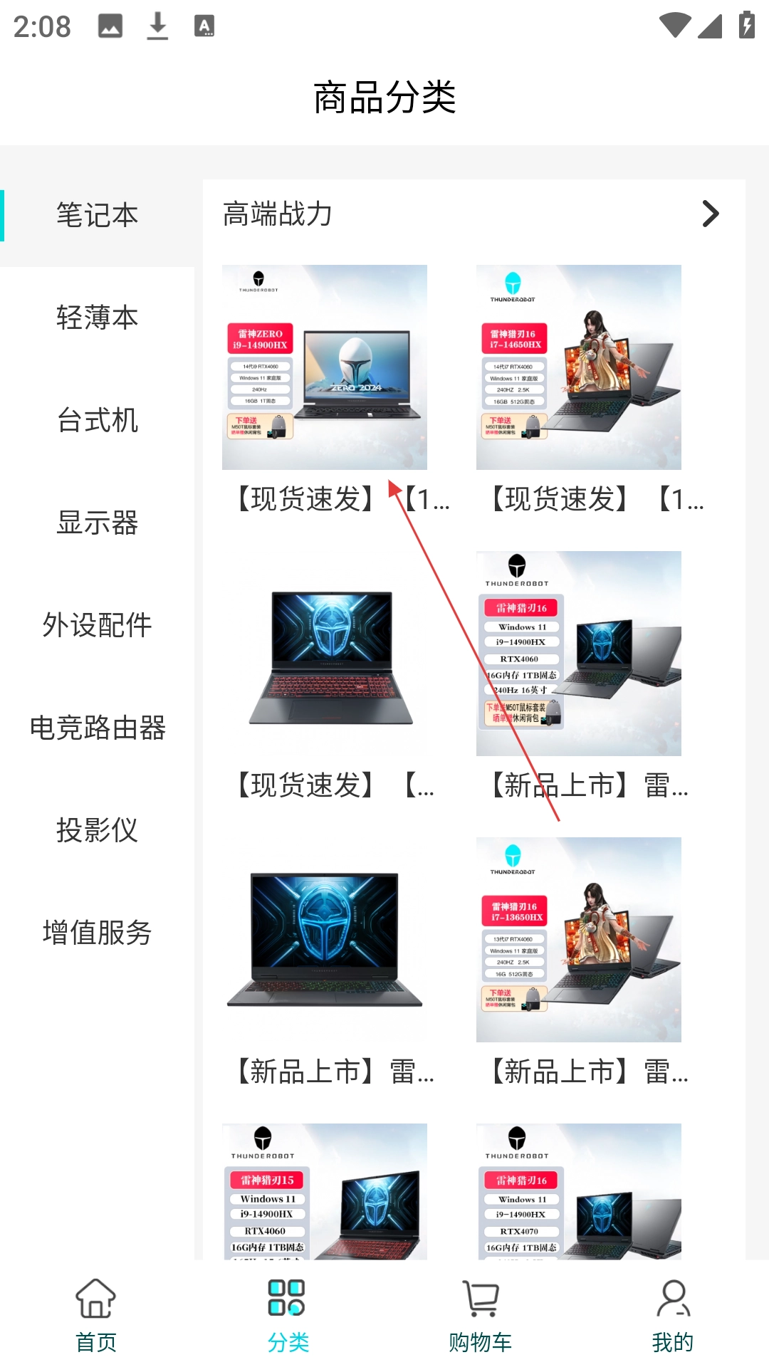 2、在商品分类页面里挑选【心仪的商品】,进入其详情页面。