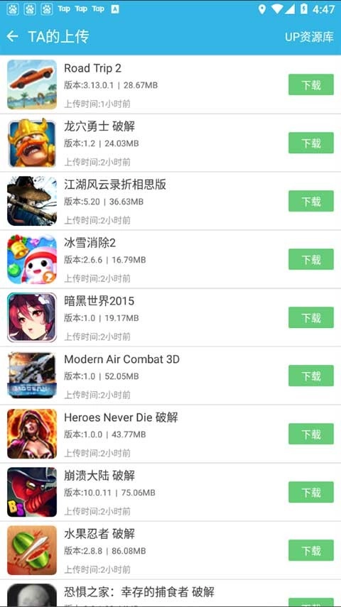 4、要是想找到自己心仪的游戏应用,那也得点击“up”功能按钮才行。