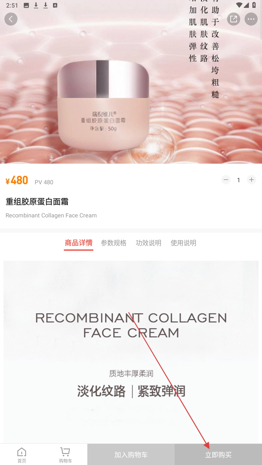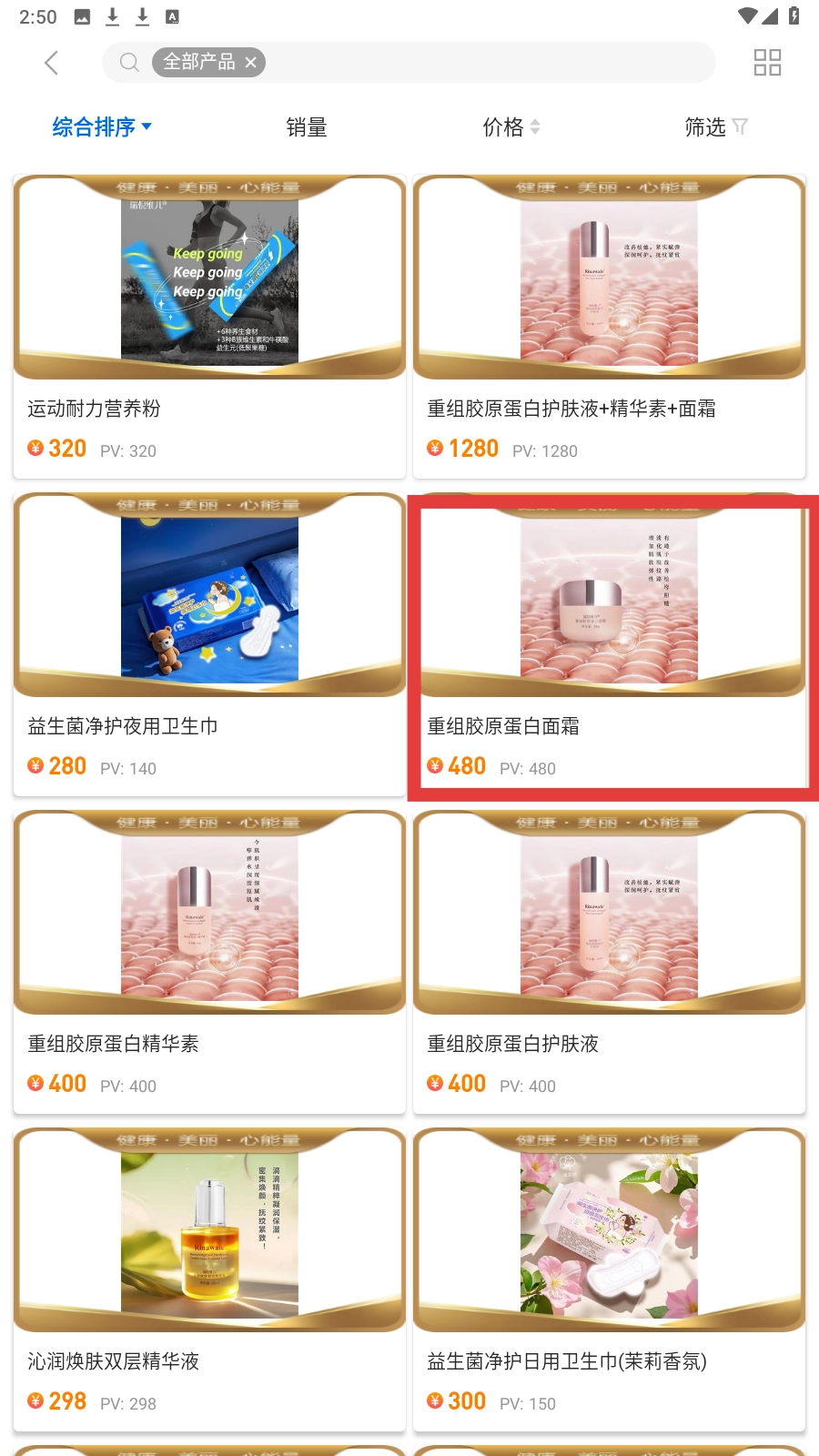 3、在商品列表,点选心仪商品,如【重组胶原蛋白面霜】。