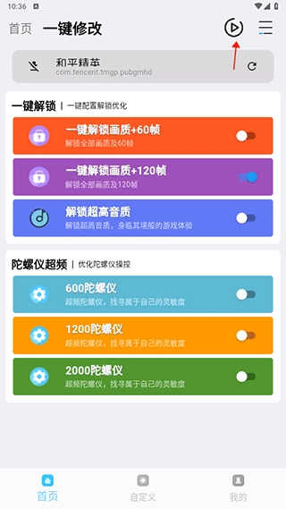 1、在本站后进入首页,点击上方的一键修改和一键解锁画质+120帧(开启前需要给软件授权)
