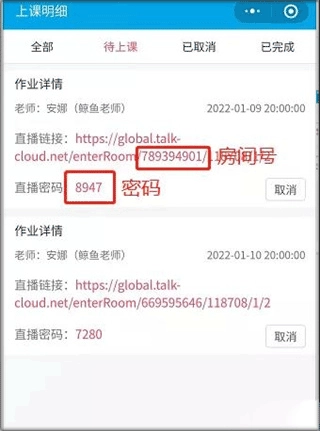 1、首先通过拓课云plus小程序来获取房间号和密码