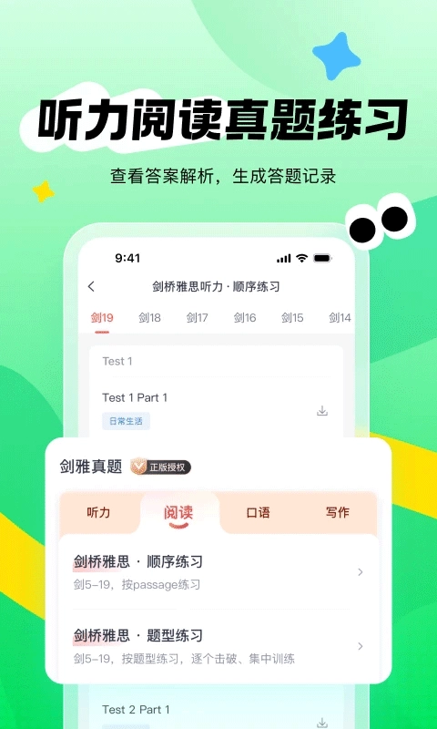 剑桥大学出版社独家授权,剑5-剑17正版听力阅读口语写作真题,随时免费练习~