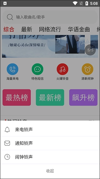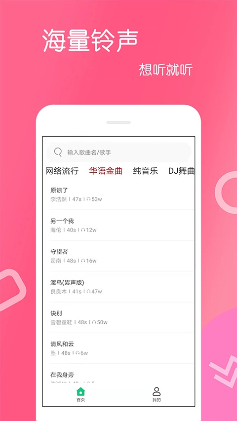 这里有网络流行、轻音乐、DJ、欧美日韩、时下热播剧、恶搞、摇滚等热门铃声,还收录了众多明星的来电歌曲。