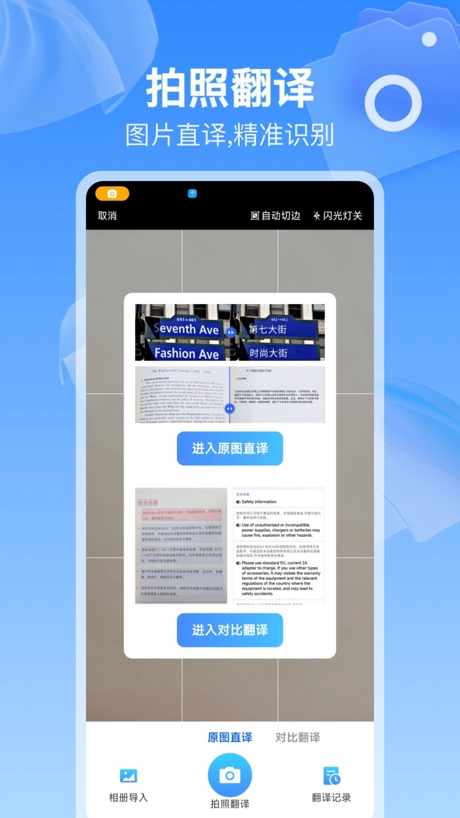4.选择【拍照翻译】功能,将镜头对准需要翻译的文字进行拍摄就能完成翻译;该功能还支持通过涂抹操作来调整识别区域,以此提升翻译的准确性。