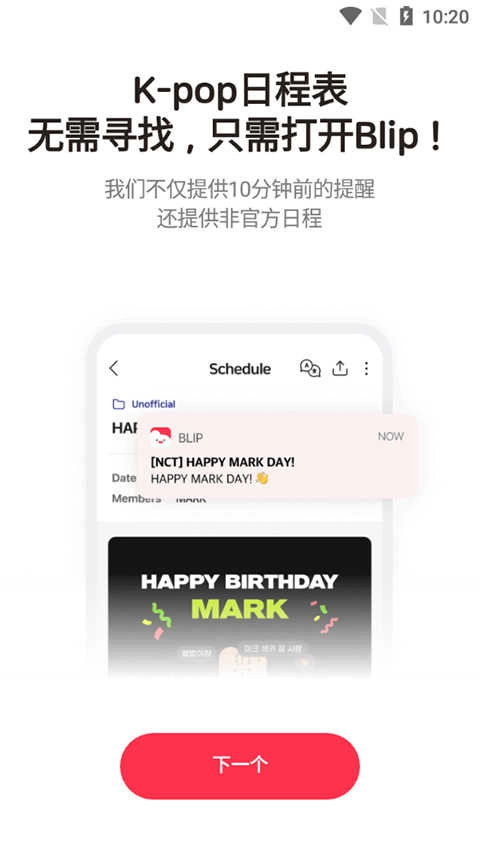 哒哒!为了帮助你跟上关键的日程安排,Blip会在任何重要的日程安排前10分钟和1分钟给你提醒!