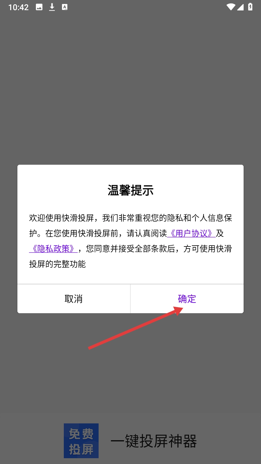 1、点击温馨提示弹窗中的【确定】按钮,即可进入投屏助手的主页面。