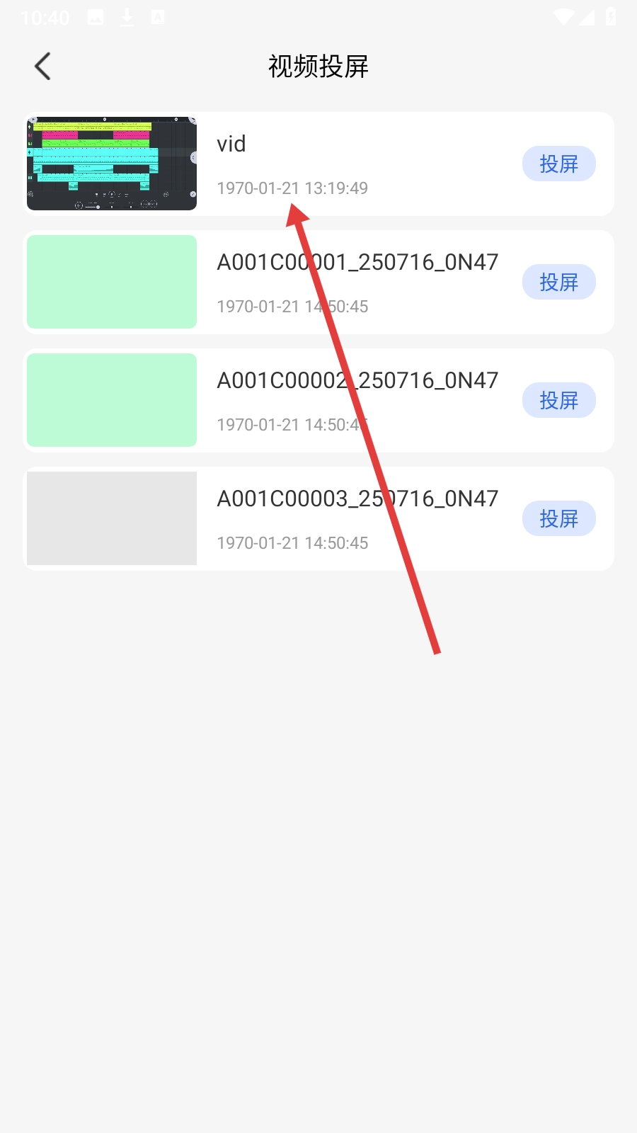 4、在视频列表页面选择想要投屏的视频,点击【投屏】,即可开始视频投屏。