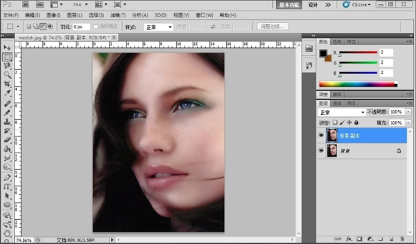 5、磨皮效果调整到位后,可对图片细节进一步优化,您可借助左侧的污点修复工具或其他工具,针对图片局部展开处理。要是觉得照片处理得有些过度,您可以点击顶部菜单栏的“图像”选项,在弹出的子菜单里选择“调整”,接着在调整的子菜单中找到“照片滤镜”选项并点击。