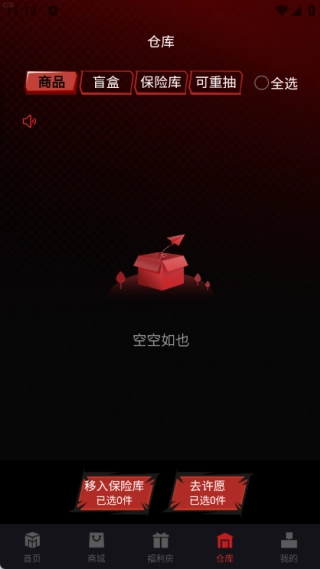 4、在仓库页面里,能够查看各类商品的相关信息,并且可以将商品移入保险库。
