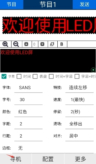 1、借助手机能够实现对LED的图文、时间、边框、特效以及背景的控制;