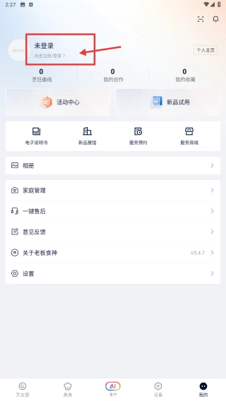 1、启动老板食神应用,点击底部的“我的”选项,进入个人中心页面。