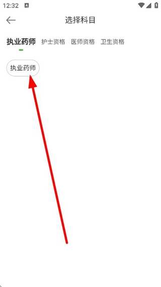 2、在选择科目页面,点击执业药师,进入执业药师科目选择页面。