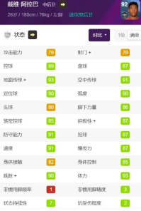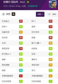 瓦拉内有恢复地位的趋势,因为新赛季的黑球们,特别是后卫们砍得太厉害,所以瓦拉内在新数据的支持下,就算是更新了数据包,现在满级也有90的速度和93的身体,双防也还不错,估计新赛季精选瓦拉内搭配着6的状态,会成为不少玩家的主力。