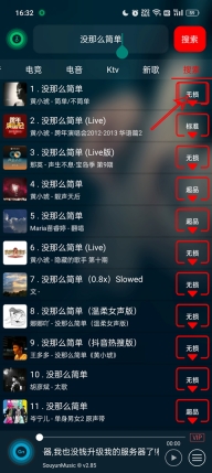 3、搜索到该音乐后,点击这首音乐右侧的无损按钮。