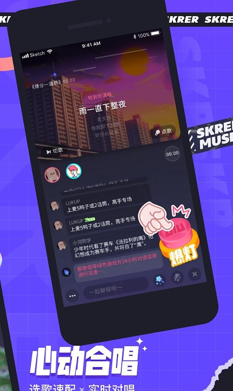 【心动合唱】开启双人连麦,实时合唱嗨不停!系统依据你的声音特点,精准匹配契合度爆表的优质嗓音,边K歌边畅聊,欢乐加倍。