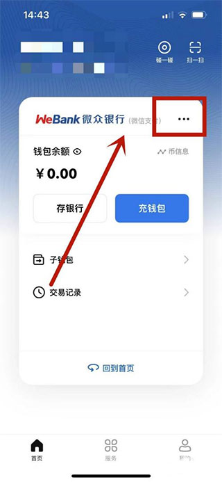 1、将首页钱包翻面过来后点击右上角的小标“...”。