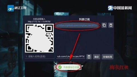 4.接着点击添加的直播源,就会提示“列表地址已切换”,如图所示